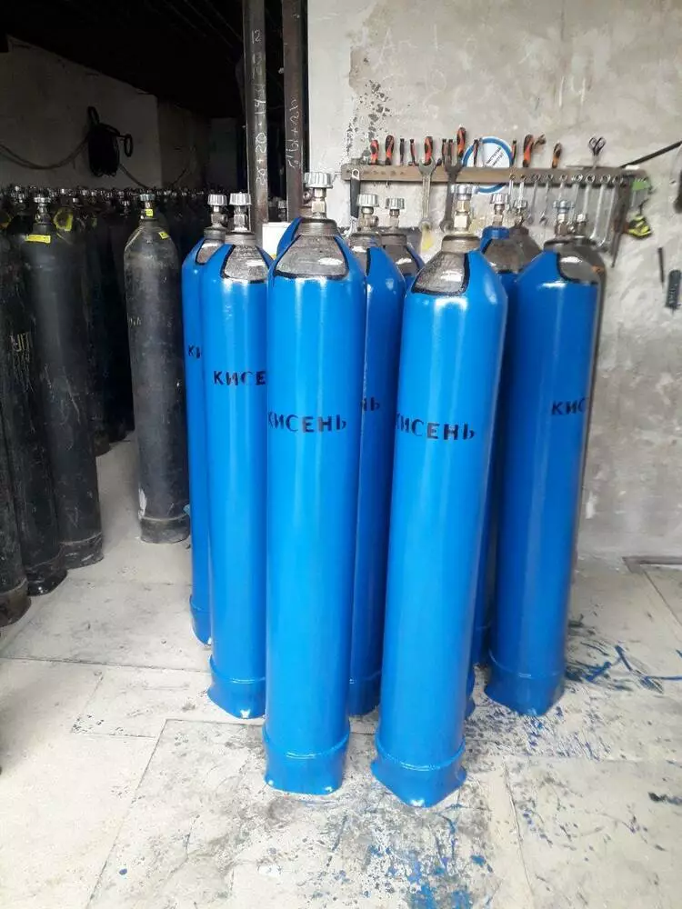 Балон з актом виготовлених робіт із заміною вентиля, пофарбований на 40 літрів, 10 літрів, 20 літрів під усі технічні гази, як-от: кисень, аргон, гелій, азот, вуглекислоти, азот.