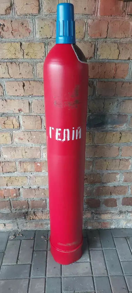 Балон пофарбований у червоний колір і маркується написом "Гелій".