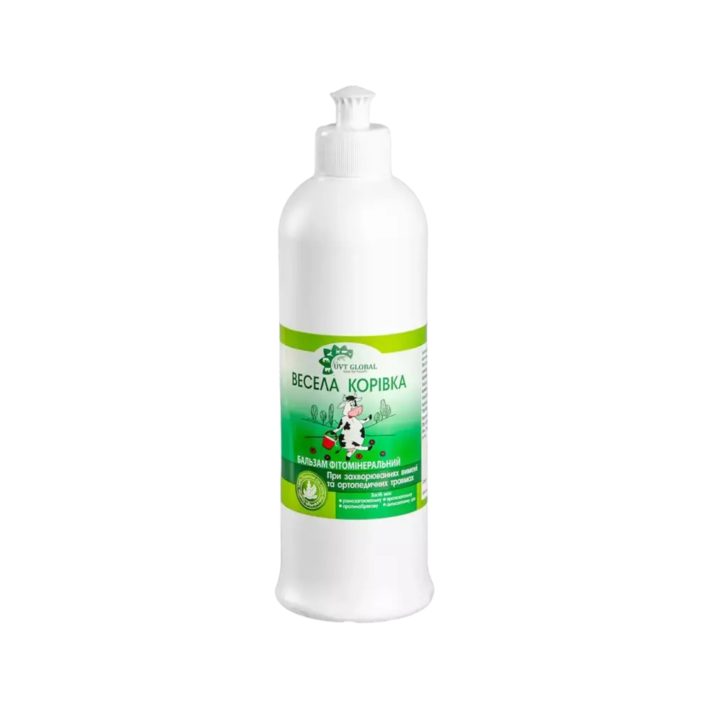 Бальзам фітомінеральний Весела корівка використовують бальзам при розноманітних захворюваннях вимені та ортопедичних травмах.Засіб має ранозагоювальну,протинабрякову, протизапальну та антисептичну дії.Компоненти, що входять до складу засобу,ліквідують запальні та застійні явища, прискорюють загоювання ран,ерозій,дезінфікують уражені ділянки,зменшують набряк,сприяють регенерації шкіри. Склад настояка прополісу,екстракт евкаліпту,олія гвоздики,олія лимону,олія лаврового листу,камфора,кокосова олія,мгд,моностеарат гліцерину,стеоринова кислота,гліцерин,каптакс,вода очищена,бодяга. Показання - мастити - трищини - рани - травми - набряки вимені - ортопедичні травми Застосування після кожного доїння необхідно змащувати бальзамом уражене місце та масажувати вим*я.При ортопедичних травмах засіб наносити на місце ушкодження.Повторювати процедуру до повного одужання.