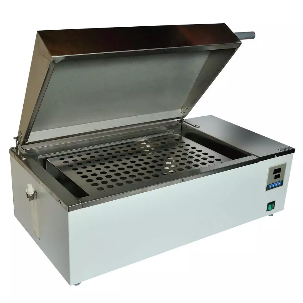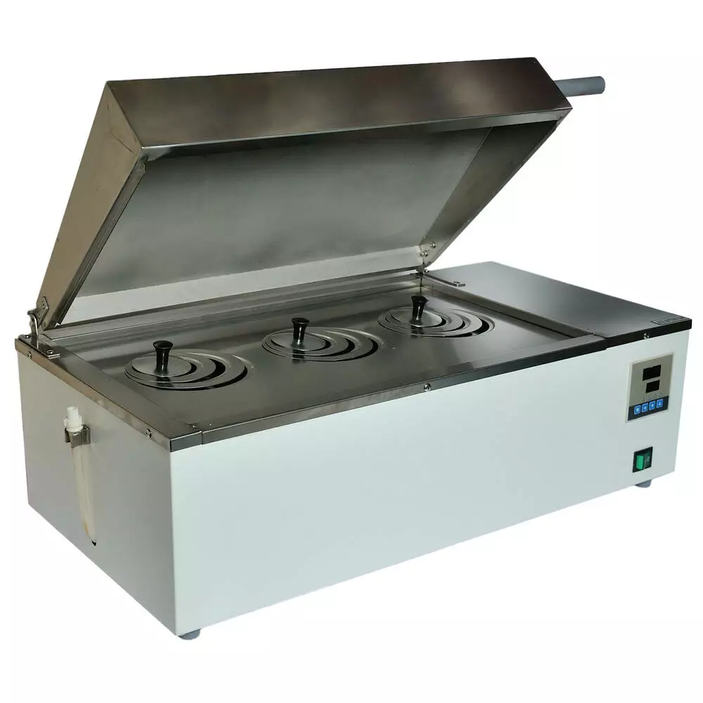 • У водяній бані передбачено цифрове управління, а одночасне відображення заданої та поточної температури з точністю до 0,1 дозволить контролювати процес.