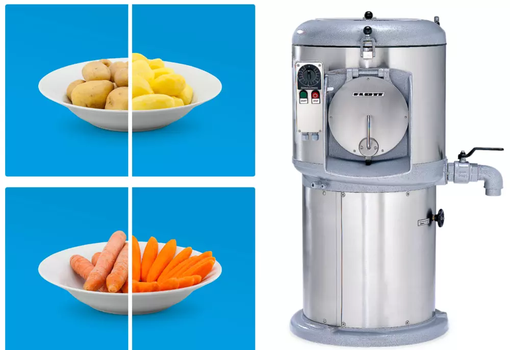 Картоплечистка практично безшумна в роботі,  забезпечує  ретельне миття та  / або чистку коренеплодів за допомогою різноманітних систем.