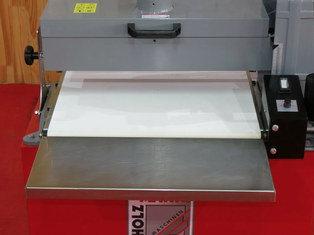 Станок оборудован шлифовальным цилиндром из волоченного алюминия диаметром 132 мм, а ширина шлифования составляет 560 мм.