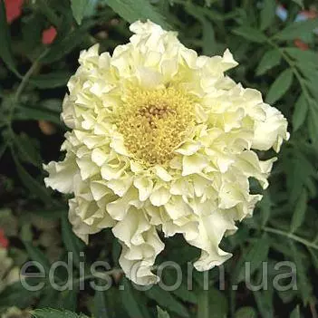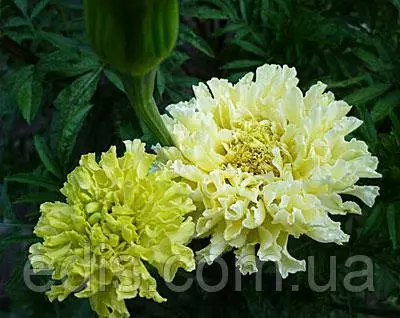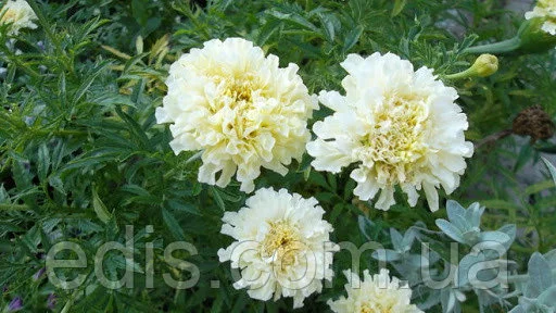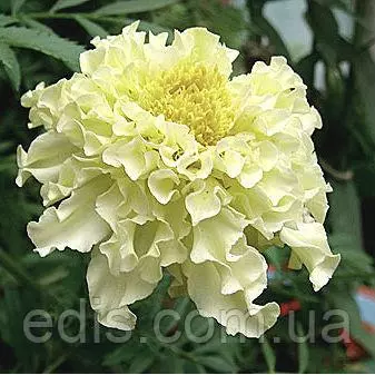 Килиманджаро – один из самих эффектних сортів в своєму підвиді Чорнобривців Африканських или Прямостоячих. Ця группа сортів була створена спеціально для зрізки. Кущі крупні, в висоту можуть досягати больше 1 метра, але при цьому стебла дуже міцні, прямостоячі. Квіти однотонні кремово-білі, махрові, дуже цікавої ажурної структури завдяки хвилястим широким пелюсткам, дуже крупні – в идеальних умовах діаметр квітів може бути до 15 см. Цвітіння рясне, безперервне, з червня до сильних морозів.
