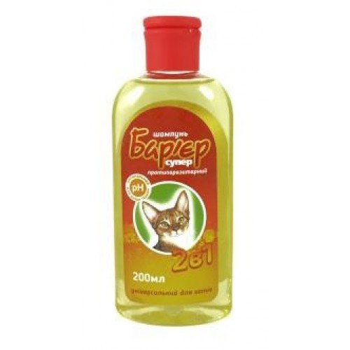 Бар'єр 2 в 1 шампунь протипаразитарний для кішок з короткою шерстю 200 мл