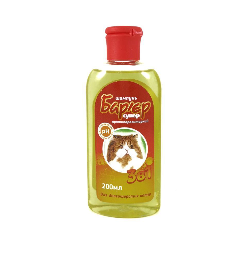 Бар'єр 3 в 1 шампунь протипаразитарний для кішок з довгою шерстю 200 мл