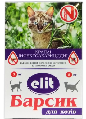 "Барсик Еліт" краплі від бліх і кліщів для кішок (3 піпетки по 2 мл), Норіс