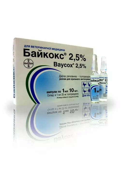 При гострих формах кокцидіозу робиться розчин з 3 ампул та 1 літра води і застосовується протягом 8 годин два дні поспіль.