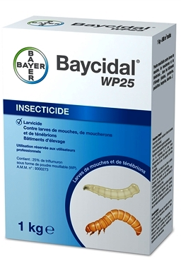 Інсектицидний засіб використовується для знищення мух, комарів і гнойових жуків в тваринницьких приміщеннях, місцях недоступних для механізованого очищення продуктів життєдіяльності тварин, резервуарах гною. Є ефективним по відношенню до личинок різних видів мух, комарів і жука-чернотелки в птахівництві.