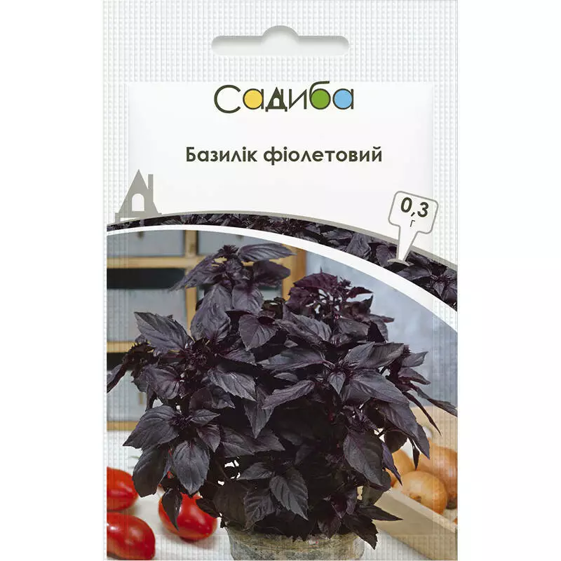 Базилік Фіолетовий - розкішна пряно - смакова однорічна культура, висотою 30 - 60 см з характерним бальзамічним запахом. Листя і пагони у свіжому та сушеному вигляді використовують для приготування різноманітних страв грецької, італійської, французької та кавказької кухонь.