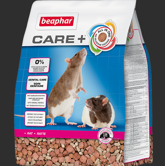Повноцінний екструдований корм супер-преміум класу для щурів CARE + містить тваринні білки і низький відсоток пилу, щоб не пошкодити чутливі дихальні шляхи щурів. Кожна гранула має однаковий склад («все-в-одному») для збалансованого харчування і запобігання вибіркового поїдання без залишку. Система (Dental Care) для сточування зубів.