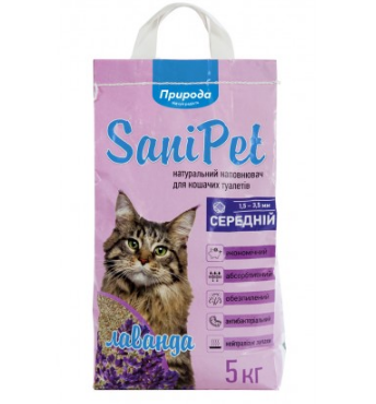 Бентонітовий наповнювач "Природа" "Sani Pet" Середній з лавандою 5 кг