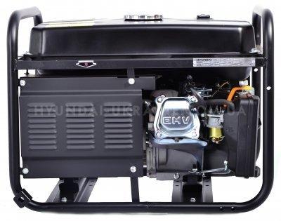 Новый уровень практичности В целом, мощная генераторная установка имеет необходимую комплектацию, на которую обращают внимание придирчивые владельцы. Это альтернатор с медной обмоткой, который осуществляет максимальную выходную мощность, благодаря проводимости тока. AVR регулятор, который в автоматическом режиме поддерживает высокое качество выходного тока. Поплавковый датчик, который обеспечивает защиту электростанции от низкого уровня смазки в системе и от аварийной ситуации. ДВИГАТЕЛЬ HYUNDAI Одноцилиндровый двигатель оригинальной разработки Hyundai с мощностью в 7,0 л.с. и новейшей технологией OHV верхней клапанной системой. Помимо длительного ресурса более 1500 м.ч. без технического обслуживания, 4-хтактовый двигатель оснащен антивибрационной системой и глушителем, который в разы снизил уровень шума. Полное сгорание топливной смеси существенно снизило токсичность отработанных газов. АЛЬТЕРНАТОР Фирменный альтернатор, задача которого производство качественного тока обладает запредельной степенью надежности. В обмотках однофазного генератора используется 100% медь. К ее основным положительным качествам относят долговечность, хорошую проводимость тока, сопротивляемость к повышению температуры. Интегрированная система охлаждения поддерживает необходимый температурный режим. Блок автоматики управляет параметрами выходного напряжения. Разработан для экономии ваших средств Небольшая стоимость домашней электростанции выгодно оттеняет ее среди аналогичных станций. Конструктивные особенности генератора позволили снизить сумму необходимых денежных средств на обслуживание агрегата. Существенной экономии способствует низкое потребление топлива, что стало возможным благодаря усовершенствованной поршневой группе, камере сгорания. Быстрый запуск бензинового двигателя станции при любой погоде также обеспечивает малый расход топливной смеси. ПАНЕЛЬ УПРАВЛЕНИЯ