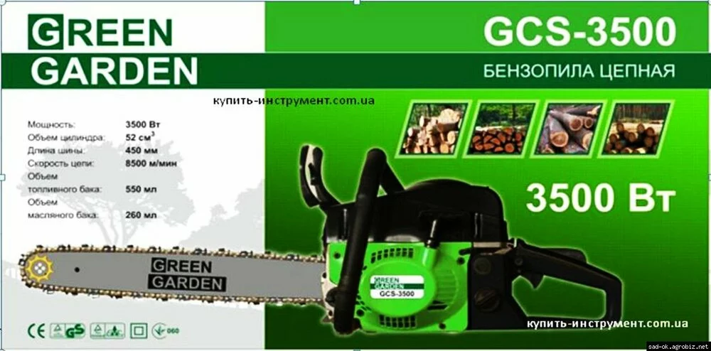 Выбирая такой надежный инструмент, как бензопила Green Garden GCS-3500, у вас никогда не возникнет трудностей во время ухода за садовыми деревьями и участком, а также заготовке дров и строительно-ремонтных работах, там, где требуется работы по дереву. Green Garden GCS-3500 имеет качественное исполнение и мощный двухтактный двигатель с объемом цилиндра 52 куб.см, работающий на бензине со скоростью вращения цепи 14,5 об/мин. Длина шины в 450 мм и шагом цепи 0,325 дюйма рассчитана на работу с достаточно большими бревнами, а система автоматической смазки цепи позаботится о своевременной смазке, что поможет избежать неприятных поломок, продлит срок службы инструмента и облегчит уход за ним. Порадует в Green Garden GCS-3500 и эргономичный дизайн, и хорошая маневренность, а также высокая безопасность и надежный тормоз цепи.