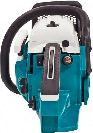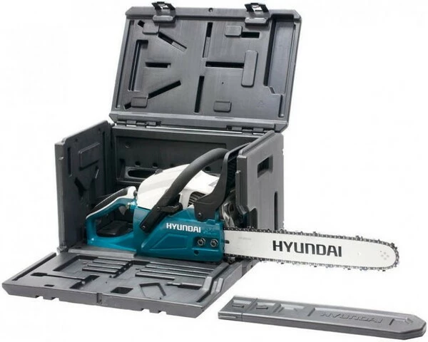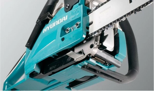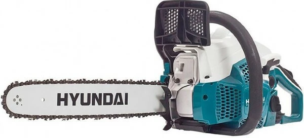 Двухтактный двигатель Hyundai IC53 Фирменная разработка южнокорейской корпорации объемом 56 см.куб. демонстрирует мощность в 3,4 л.с. что обеспечивает продуктивную порезку древесины всех пород с разной степенью содержания влаги в тканях. 11 тыс. оборотов в минуту гарантируют аккуратный пропил, позволяя использовать бензопилу для резки лесоматериала. Шина длиной 50 см Пилильная гарнитура оптимальных размеров для спила деревьев, толстых веток, распила поленьев на чурбаки для колки дров. Профессиональная оснастка выполнена из прочного сплава с повышенной стойкостью к стиранию и слабо подвержена нагреванию. Стандартные звенья повышают качество и скорость реализации сложных задач. Натяжитель для ослабления/подтяжки цепи расположен на боковой грани корпуса. Система легкого запуска Сниженная сопротивляемость коленвала и встроенный декомпрессор способствуют быстрому воспламенению бензиново-масляной смеси при пуске пилы. Для активации предусмотрен ручной тросик, выдергивание которого не требует большой физической силы. Защита от случайного включения Блокировка исключает риск непреднамеренного старта для ограждения пилильщика и окружающих от опасных ситуаций с вероятностью получения серьезных травм. Вместительный топливный бак Объем резервуара для ГСМ составляет 550 мл. Одной полной заправки хватит на переработку крупной партии бревен или валки нескольких деревьев, при этом вес аппарата практически не увеличится. Сбалансированная конструкция Антивибрационные технологии и балансировка агрегата направлены на комфортную деятельность оператора, возможность врезки под любым углом и снижения нагрузки с мышц рук. Поверхность рабочих рукояток предотвращает скольжение ладоней и минимизирует вибровоздействие.