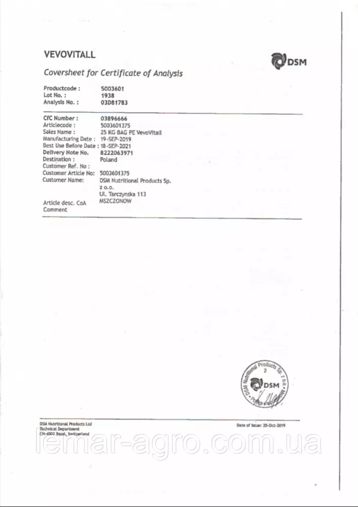 VevoVitall - безпечне джерело бензойної кислоти для використання в тваринництві. Він легко обробляється, має слабкий запах і низьку корозію.