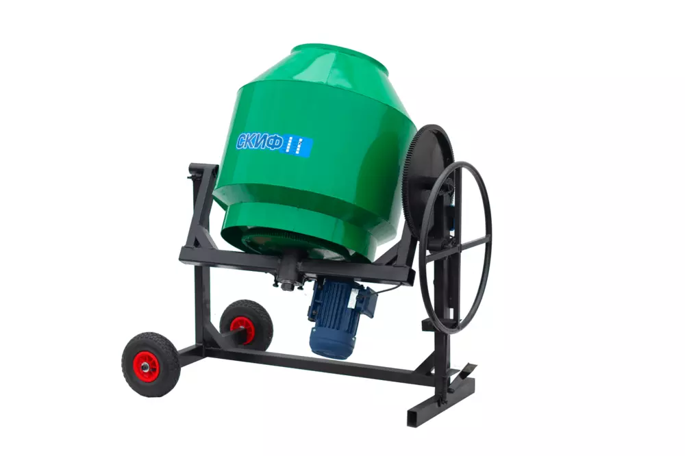 Многие мастера полюбили бетономешалку Скиф БСМ 250 за качественную сборку и долговечность. Данная модель оборудована вместительным барабаном, объем которого составляет 250 литров. Вы сможете получить до 210 литров раствора за один рабочий цикл. Представленное оборудование использует увеличенное число оборотов барабана для достижения более высокой скорости и качества смешивания. Также нельзя не отметить достаточно тихую и стабильную работу данного агрегата. Благодаря наличию небольших колесиков в основании рамы пользователь может с легкостью транспортировать аппарат.