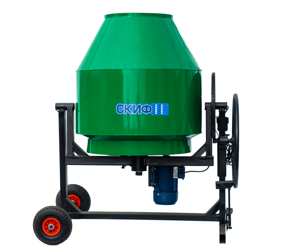Бетономешалка БСМ 320. Устройство рассчитано на приготовления растворов и сухих смесей при базовой загрузке в 270 литров на один рабочий цикл. Хотим отметить то, что здесь установлен стальной венец, который намного прочнее пластмассового или чугунного. Также изготовитель оснастил прибор мощным двигателем. Дно бака усилено металлом 12 мм, что предполагает более высокую надежность при повседневной эксплуатации. Универсальное подключение к сетям 220/380В позволяет работать пользователю на любых строительных площадках. Для опорожнения барабана применена система специального опрокидывающего колеса большого диаметра.