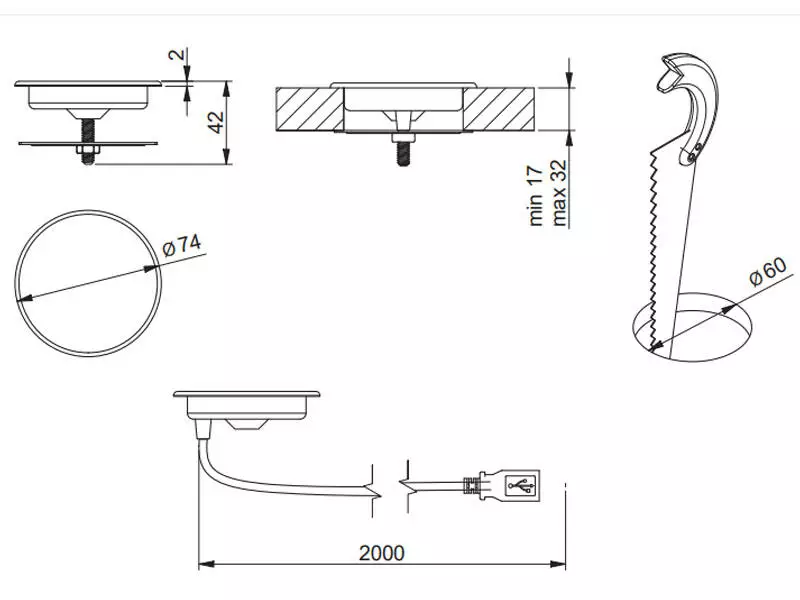 • USB роз’єм: Можливість підключення до різних джерел живлення через стандартний USB роз’єм.
