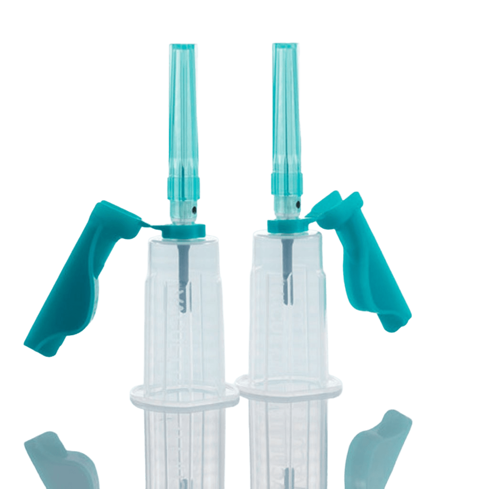 Модель оснащена інтегрованою голкою 22G × 1 1/2" з V-подібною лазерною заточкою та силіконовим покриттям, що забезпечує точну пункцію та знижує травматичність. Після використання активується обертовий захисний механізм, який мінімізує ризик випадкових уколів.