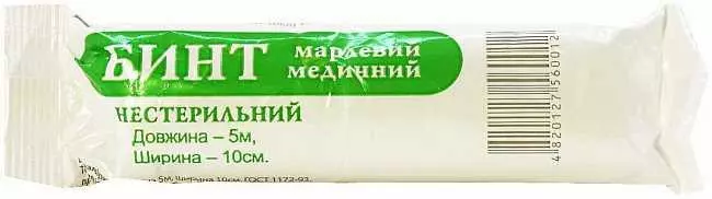 Бинти упаковані в поліпропілен.Бинти медичні стерильні та нестерильні в індивідуальній упаковці можуть застосуються для перев'язок, фіксації тампонів з вати та інших медичних виробів. Бинти можуть бути частиною як домашньої аптечки, так і набору швидкої допомоги. Бинти подпрессованы по краях, що запобігає їх розмотування при випаданні з руки в момент накладення пов'язки.