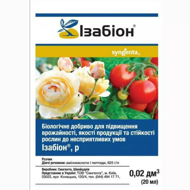 Ізабіон – це нове сучасне біологічне добриво тваринного походження. Ізабіон® складається з повного спектра необхідних для швидкого росту й розвитку рослини амінокислот і пептидів, на синтез яких вона не витрачає додаткової енергії. У результаті застосування препарату збільшується продуктивність і покращується якість урожаю, значно підвищується стійкість рослин до несприятливих умов навколишнього середовища.