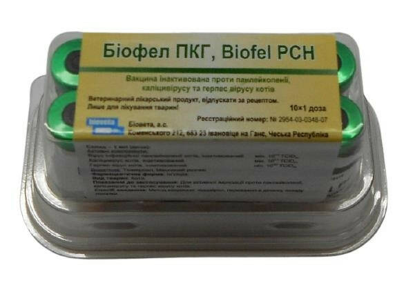 Біофел PCH, Biofel PCH вакцина інактивована проти панлейкопенії, каліцивірозу та герпесвірусної інфекції котів