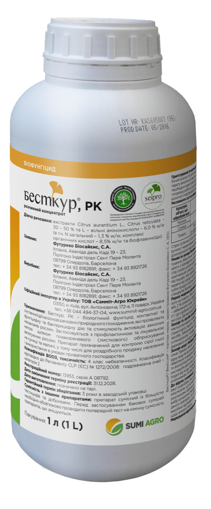 Бесткур - біофунгіцид для контролю сірої гнилі малини, суниці та томатів. Призначений для знищення збудників сірої гнилі, фітофторозу, альтернаріозу, макроспоріозу, а також бактеріальних захворювань на малині, суниці та томатах.