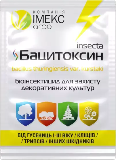 Біоінсектицид Bacitoxin діє на основі бактерії Bacillus thuringiensis, для боротьби з лускокрилими шкідниками.