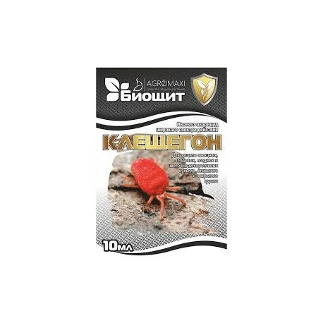Клещегон 10 мл – Акарицид, який відрізняється блискавичним і згубним ефектом для шкідників. Засіб використовується для захисту плодових, квітково-декоративних, ягідних, а також овочевих культур. Речовина не викликає резистентності завдяки удосконаленій формулі.