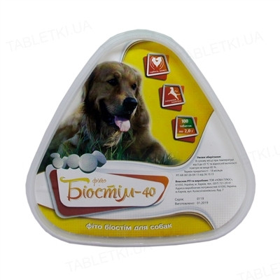 Щоденне застосування "Фіто Біостим 40" забезпечує організм собаки необхідною кількістю вітамінів і мінералів. Створений на основі пивних дріжджів він в першу чергу впливає на стан шкірного покриву собаки і її шерсть, стимулює імунну систему, підвищує апетит і використовується профілактичний метою для попередження захворювань печінки.