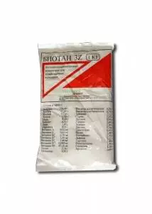 Витаминно-минеральный концентрат для домашних животных Состав в 1000 г: Кислота аспарагиновая — 4,38 г Кальций — 238,00 г Кислота глютаминовая — 6,74 г Фосфор — 85,00 г Треонин — 2,12 мг Магний — 17,33 г Серин — 2,05 мг Железо — 0,80 г Пролин — 0,93 мг Медь — 0,20 г Глицин — 2,09 мг Кобальт — 0,05 г Аланин — 2,94 мг Цинк — 2,40 г Цистин — 0,34 мг Марганец — 0,95 г Триптофан — 0,45 мг Витамин А — 0,04 мг Валин — 2,48 мг Витамин Е — 0,63 мг Изолейцин — 2,30 мг Витамин В1 — 0,70 мг Лейцин — 3,35 мг Витамин В2 — 3,48 мг Тирозин — 1,44 мг Витамин В6 — 1,40 мг Фенилаланин — 1,8 мг Витамин В12 — 0,004 мг Гистидин — 1,20 мг Витамин Рр — 47,16 мг Аргинин — 2,68 мг Лизин — 3,74 мг Метионин — 0,90 мг Свойства и действие: Концентрат содержит состав микро- и макроэлементов, витаминов, экзо- и эндогенных аминокислот, необходимых для нормального функционирования организма. Обеспечивает ускорение роста животных, благодаря лучшему использованию кормов, сокращает время откорма. Концентрат снижает показатель заболеваемости и смертности животных, повышает продуктивность качества. Предотвращает болезни, происходящие от смены условий содержания или возникающие на фоне обмена веществ или недостатка витаминов и минеральных компонентов. Применение и дозировка: Вид животных: Поросята Суточная доза: 2,5 грамм Чайные ложки: 0,5 Вид животных: Свиньи на доращивании (до 50 кг) Суточная доза: 10-15 грамм Чайные ложки: 2-3 Вид животных: Свиньи бековные до 90 кг Суточная доза: 20 грамм Чайные ложки: 4 Вид животных: Свиньи откормочные свыше 90 кг Суточная доза: 15 грамм Чайные ложки: 3 Вид животных: Телята до 4 месяцев Суточная доза: 20 грамм Чайные ложки: 4 Вид животных: Телята от 4 мес до 1 года Суточная доза: 40 грамм Чайные ложки: 8 Вид животных: Скот весом от 150 до 250 кг Суточная доза: 40 грамм Чайные ложки: 8 Вид животных: Скот свыше 250 кг Суточная доза: 60 грамм Чайные ложки: 12 Вид животных: Норки Суточная доза: 1-2 грамм Чайные ложки: 0,25-0,5 Вид животных: Лисицы Суточная доза: 2,5-5 грамм Чайные ложки: 0,5-1 Вид животных: Цыплята до 2-х месяцев- на 10 гол. Суточная доза: 5 грамм Чайные ложки: 1 Вид животных: Цыплята старше 2-х мес. — на 10 гол. Суточная доза: 5 грамм Чайные ложки: 1 Вид животных: Куры-несушки — на 10 гол. Суточная доза: 3 грамма Чайные ложки: 1 Вид животных: Индейки до 2-х мес. — на 10 гол. Суточная доза: 10 грамм Чайные ложки: 2 Вид животных: Индейки до 6-ти мес. — на 10 гол. Суточная доза: 7 грамм Чайные ложки: 1,5 Вид животных: Гуси до 2-х мес. — на 10 гол. Суточная доза: 10 грамм Чайные ложки: 2 Вид животных: Гуси до 6-ти мес. — на 10 гол. Суточная доза: 7 грамм Чайные ложки: 1,5 Вид животных: Утки до 2-х мес. — на 10 гол. Суточная доза: 10 грамм Чайные ложки: 2 Вид животных: Утки до 6-ти мес. — на 10 гол. Суточная доза: 7 грамм Чайные ложки: 1,5 Показания: Интенсивный откорм животных, болезни, возникающие на фоне недостатка витаминов и минеральных компонентов, предупреждает болезни молодняка: «комплексные (полиэтиологичные) поносы», рахит, а также в случае выздоровления от указанных болезней. Особые указания: При использовании концентрата наблюдается повышенная потребность животных в воде — необходимо при его применении обеспечить животных достаточным количеством воды. Указанные дозы следует применять как ориентировочные, которые можно регулировать. Для переболевших, отставших в росте животных можно индивидуально повысить дозы по усмотрению врача.