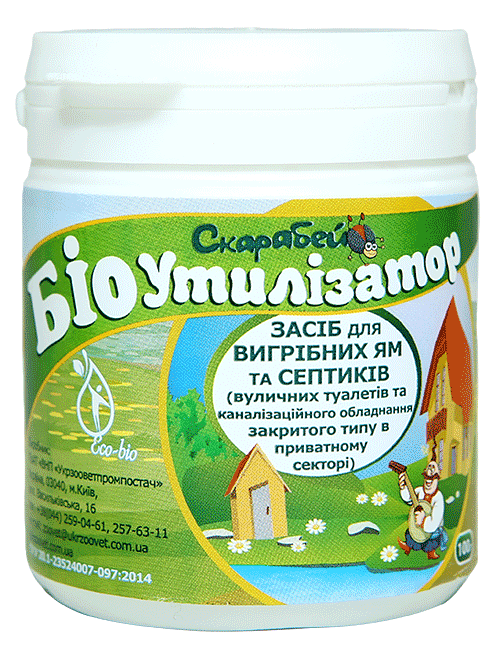 Біоутилізатор "Скарабей" - це високоефективна композиція адаптованих до специфічного середовища бактерій. Оптимально підібраний склад біопрепарату та висока ферментативна активність композиції бактерій дозволяють швидко утилізувати всі типи побутових органічних відходів. При внесенні до вигрібної ями мікроорганізми активно розкладають залишки, накопичені в результаті експлуатації. При цьому поступово зменшується вміст твердих фракцій (фекалій) та відновлюється дренаж ґрунту. Наявність миючих засобів, за винятком засобів хлору типу «БЕЛИЗНИ», не впливає на швидкість біологічного розкладання. Спорові культури, що входять до складу препарату, володіють також антагоністичною активністю до хвороботворної мікрофлори, що сприяє знезараженню органічних відходів.