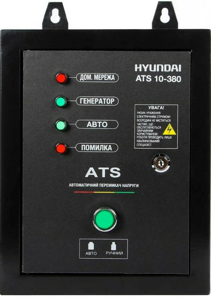 ОписБлоки керуючої автоматики Hyundai  призначені  для перемикання живлення зі стандартної електромережі на генератор. Блок автоматично переходить на генераторне живлення при зупинці подачі електрики. Також можливий варіант переходу назад в разі відновлення живлення в мережі. Автоматика сумісна з різними трифазними моделями електростанцій Hyundai серії DHY. Максимальна потужність міні-станцій, що підключаються - 10 кВт. Блок керуючої автоматики підключається до силової техніки, оснащеної відповідним виходом для підключення ATS провідним методом.Комплектація:Блок автоматикиІнструкція користувачаУпаковка