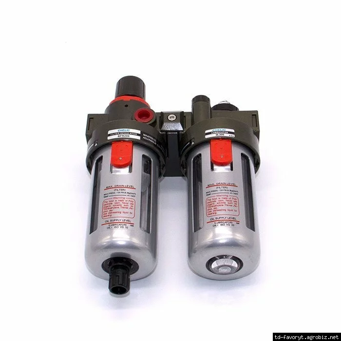 Комбинации фильтров, регуляторов и лубрикаторов завершают