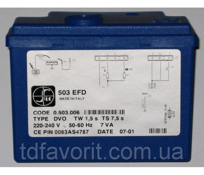 Блок розжига и контроля 503 EFD 0 503 006 осуществляющая управление и контроль газовых агрегатов для управления газовыми горелками SIT с использованием принципа ионизационного детектирования пламени.