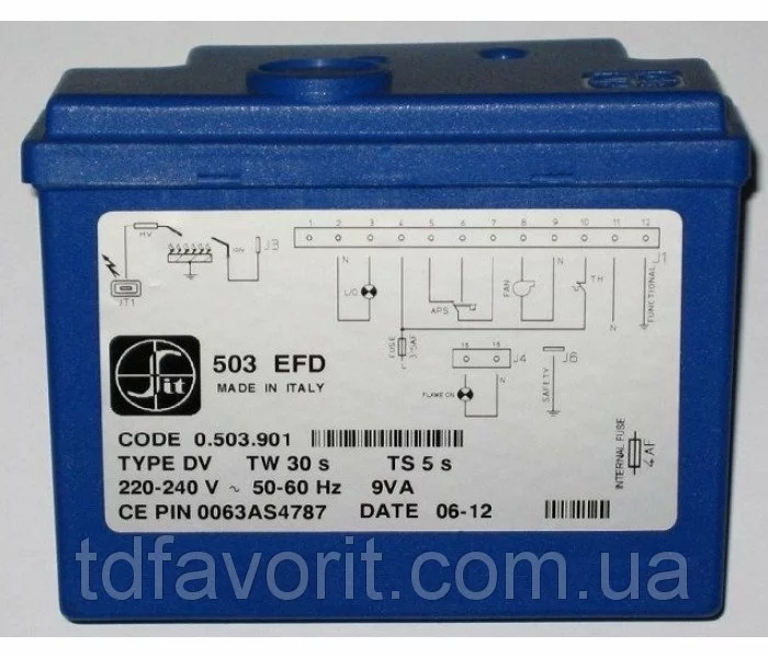 Блок розжига и контроля 503 EFD 0 503 901 осуществляющая управление и контроль газовых агрегатов для управления газовыми горелками SIT с использованием принципа ионизационного детектирования пламени.