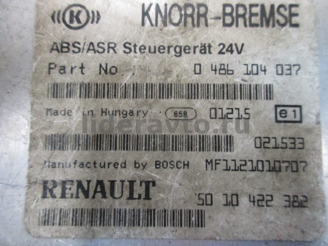 Блок управления ABS/ASR KNORR-BREMSE 0486104037 5010422382, RENAULT (Рено) MAGNUM PREMIUM DCI (T-068) KNORR-BREMSE 5010422382