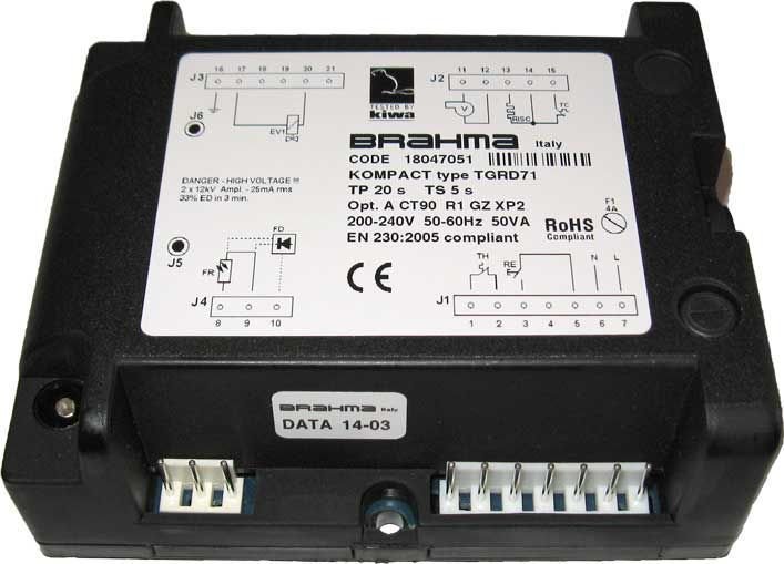 Микропроцессорный контроллер Brahma серии TGRD 71, TGRD 91 (Kompact) специально предназначен для управления атмосферными газовыми горелками с вентилятором или без; или дизельными горелками. Контроллеры TGRD71 и TGRD91 могут оснащаться встроенным или внешним трансформатором розжига.