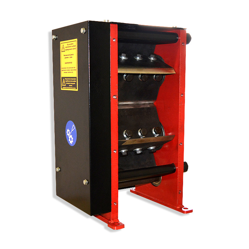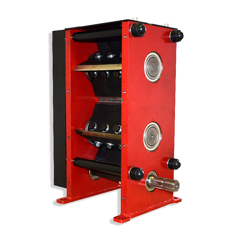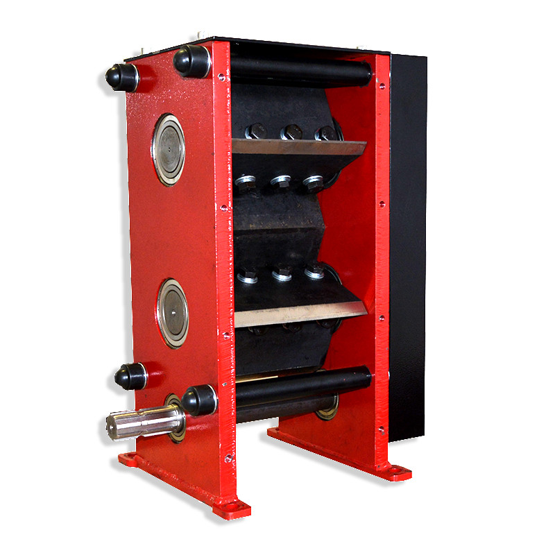 Режущие валы - квадратные, шестерни на валы посажены на шлицах. (Шестерни: диаметр 230мм, толщина 40мм). Ножи изготовлены с рессорной стали марки 65Г с последующей термообработкой и имеют двойной угол заточки, что позволяет продлить срок службы ножей. Толщина ножей 12мм.