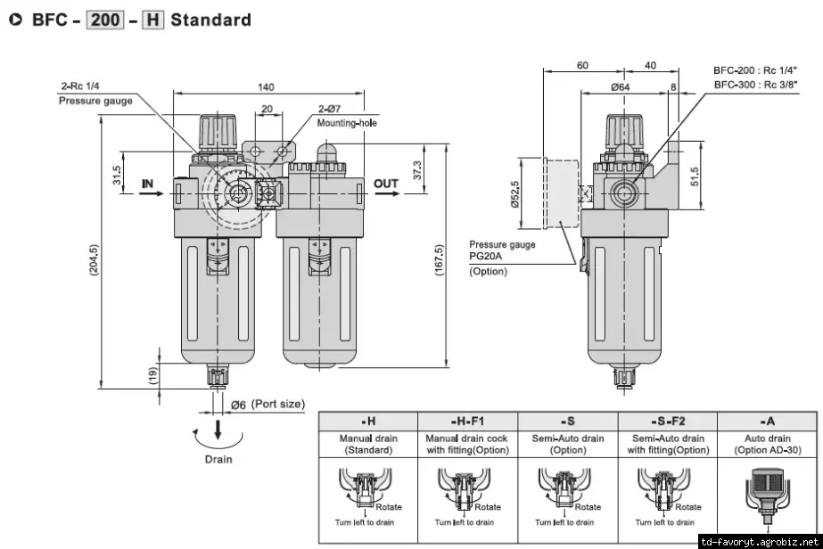 Блоки подготовки воздуха BFC 300-А F.R.L