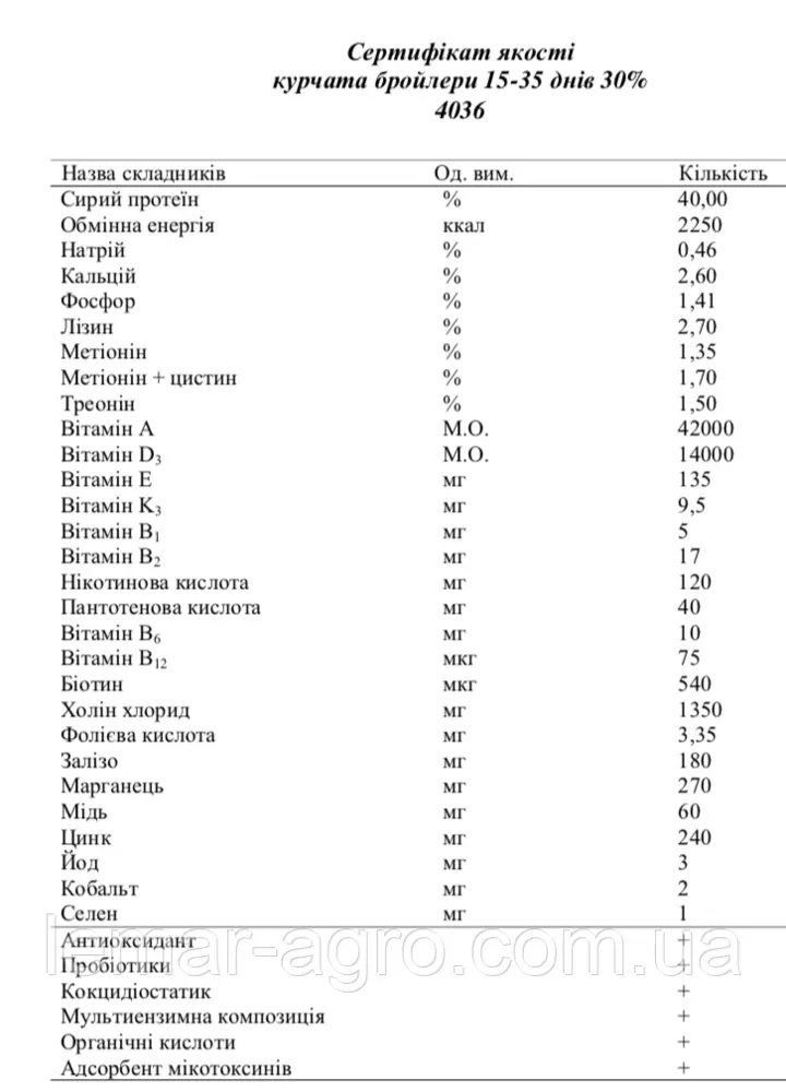 • Спеціально підібрані інгредієнти для змішування із зернових культур найбільш типових для нашої кліматичної зони та доступних за ціною.