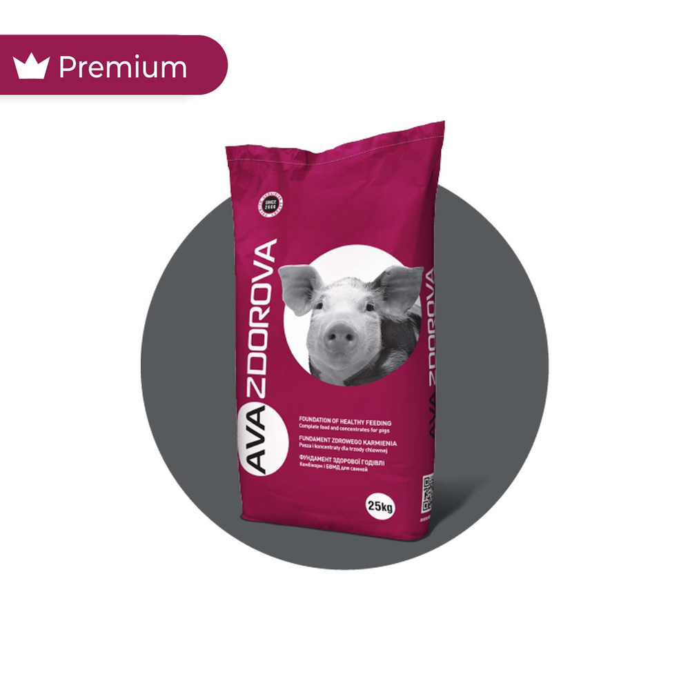 AVA ZDOROVA Фініш 10% призначена для виготовлення комбікорму для свиней на фінішному періоді відгодівлі (віком 124 – 170 днів та живою масою 65 – 110 кг)