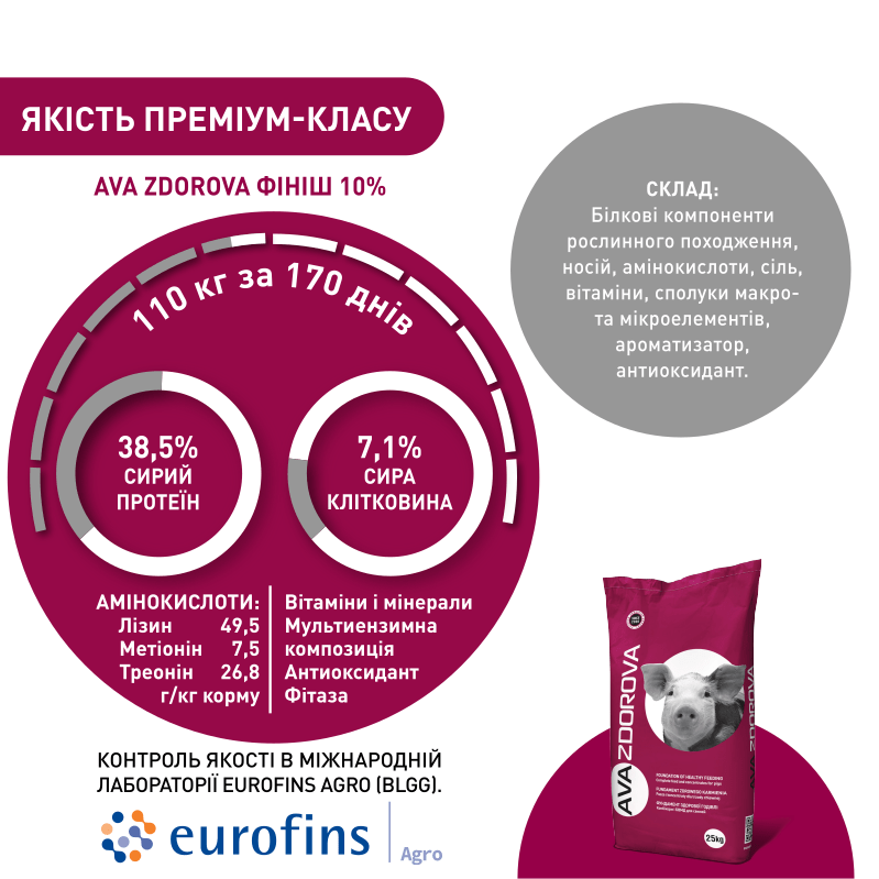 ЗДОРОВИЙ РЕЗУЛЬТАТ ГОДІВЛІ - AVA ZDOROVA (ЗДОРОВА) ФІНІШ 10% (БМВД)