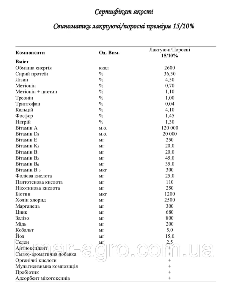 • Спеціально підібрані інгредієнти для змішування із зернових культур найбільш типових для нашої кліматичної зони та доступних за ціною.