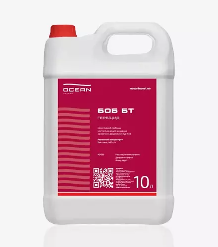 Назва товару: Боб БТ Короткий опис: Боб Бт — це селективний гербіцид контактної дії, розроблений для боротьби з однорічними дводольними бур'янами, включаючи ті, що стійкі до 2М-4Х та 2,4-Д. Механізм дії: Гербіцид діє за принципом блокування фотосинтетичного транспорту електронів, внаслідок чого припиняється асиміляція CO2 і рослини гинуть після короткого періоду зупинки у розвитку. Дієва речовина рухається в рослині акропетально, від основи до верхівки. Переваги: - Висока селективність до культурних рослин; - Не потребує обмежень в сівозміні; - Широкий спектр дії, ефективний проти різних видів дводольних бур'янів; - Надійно контролює осокові бур'яни на посівах рису. Особливості застосування: - Вноситься наземним обприскуванням за допомогою штангового обприскувача; - Найкраща ефективність спостерігається при обробці бур'янів на стадії 2-4 справжніх листків; - Оптимальні погодні умови для обприскування: температура від +15°C до +25°C та відсутність сильного вітру; - Дощ протягом шести годин після внесення може знижувати ефективність; - Строки виходу на оброблені площі — 3 дні для механізованих робіт, для ручних робіт обмеження не регламентується.