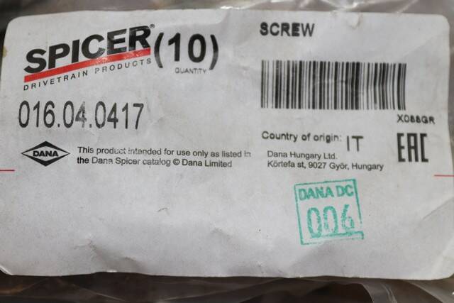 3. Гарантія виробника – на всі запчастини DANA SPICER поширюється офіційна гарантія, що забезпечує захист від підробок.