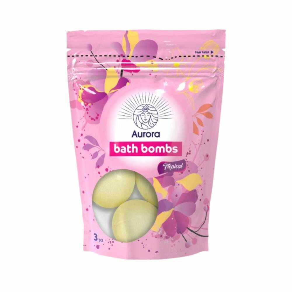 Бомбочки д/ванни Aurora (Tropical), 3*50 г. Це набір ароматних бомбочок, створених для розслаблення і відновлення після напруженого дня з екзотичними нотами ананаса, кокоса та ванілі вони перетворюють кожну ванну на сонячний SPA. Ідеально підходить для дорослих і дітей від 3 років, вони пропонують розслаблення і задоволення, поважаючи ніжну шкіру. Як тільки вони потрапляють у воду, бомби випускають п’янкий аромат і ніжну піну. Їхні екзотичні ноти перенесуть вас на сонячні пляжі, створюючи унікальний розслаблюючий сенсорний досвід. Розроблені з ніжними інгредієнтами, вони дбайливо ставляться до чутливої шкіри та ідеально підходять для ритуалу оздоровлення.
