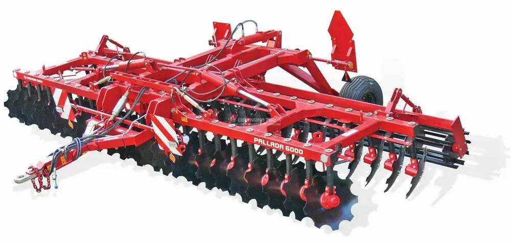ПАЛЛАДА 6000 - борона дискова причіпна призначена для ресурсозберігаючої передпосівної обробки ґрунту під посів зернових, технічних і кормових культур, знищення бур'янів та подрібнення жнив після збирання посівних культур, а також подрібнення, вирівнювання та ущільнення ґрунту після дискування.