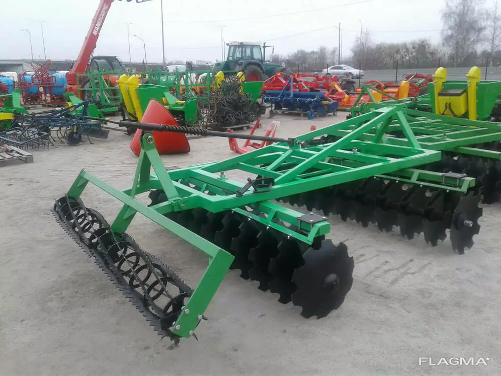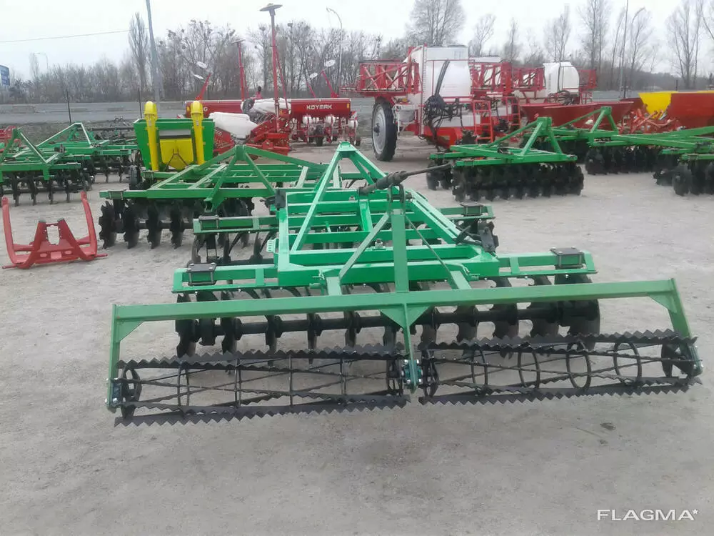 В серии борон 2-х секционных в V системе находятся бороны с шириной захвата от 1.5 до 2.7 м. Установка угла атаки (поворота) дисков в диапазоне от 7° до 22° позволяет получить нужное качество работы в зависимости от переменных условий и рода почв.
