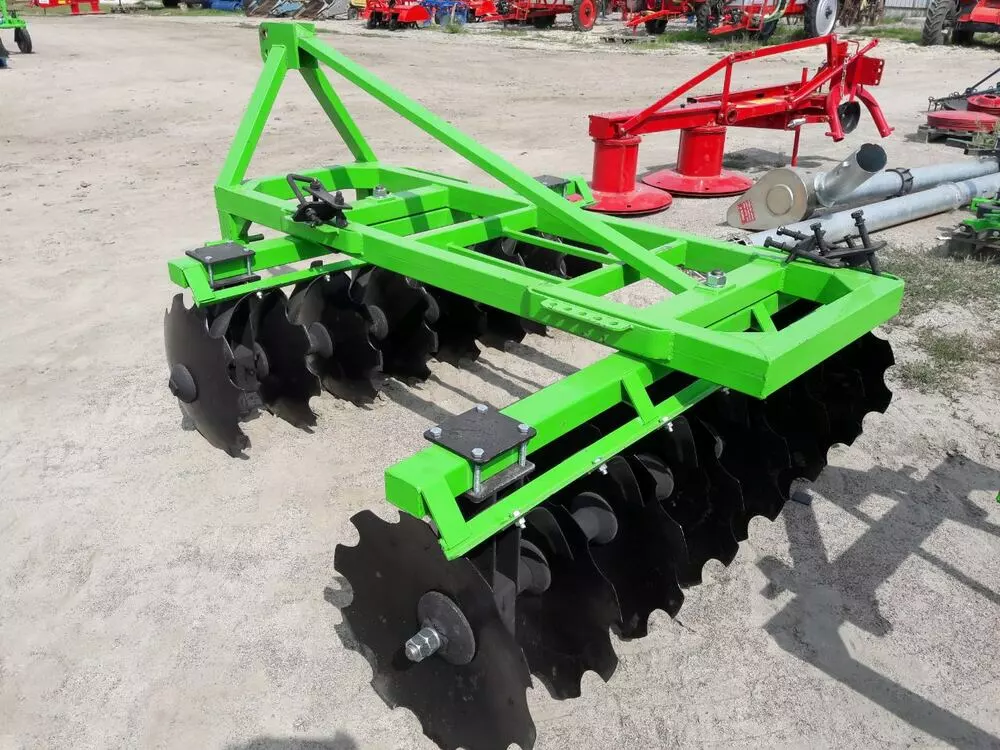Навесная 2-х секционная дисковая борона ширина захвата 1,8 м серии U363 фирмы Bomet (Польша) предназначена для предпосевной обработки плотных вспаханных на зиму почв (кроме каменистых) с таким содержанием влаги в почве, которое позволило бы произвести их правильную обработку. Дисковая борона предназначена также для разрывания и размельчения дернистых отвалов после пахоты лугов других пастбищных угодий, а также для выполнения лущения стерни непосредственно после срезания растений. Дисковые бороны могут использоваться для резки и заделывания навоза после разбрасывания зеленых удобрений малой и средней величины. Машина может быть использована для перемешивания с землей минеральных удобрений и извести. Работа может выполняться на склонах до 8,5 градусов.